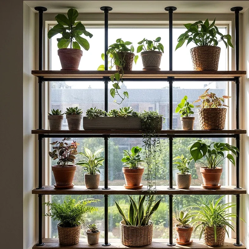 Industrial pipe shelving systems bring urban sophistication and raw strength to your window plant displays with their bold metallic presence. The black iron or galvanized steel pipes create striking contrast against green foliage, making your plants pop with dramatic flair. These robust structures can support heavy pots and mature plants without any concern about stability or weight distribution issues. The modular nature allows you to customize configurations to fit your specific window dimensions and design preferences perfectly. You can easily add or remove shelves as your plant collection grows or changes with the seasons. The industrial aesthetic complements lofts, modern farmhouses, and contemporary spaces where edgy design elements shine brightest throughout the space.