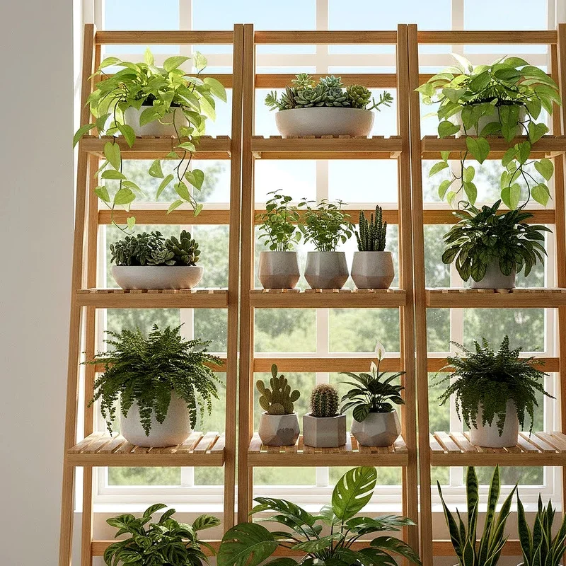 2. Tiered Wooden Plant Stands for Maximum Display