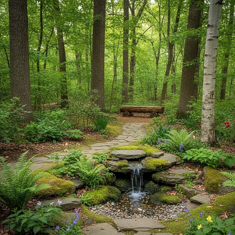 The gentle sound of trickling water enhances the peaceful atmosphere of woodland gardens while attracting birds and beneficial wildlife. A small naturalistic water feature like a bubbling rock fountain or shallow woodland pool fits perfectly into forest-inspired landscapes without looking contrived. Position your water feature in a shaded area where it will stay cooler and require less maintenance than sun-exposed options. Use natural materials like stacked stones or hollowed logs to create the feature, and surround it with moisture-loving plants like cardinal flower or turtlehead. Even a simple birdbath can bring water into your woodland garden, providing essential drinking and bathing opportunities for feathered visitors who will reward you with their presence.